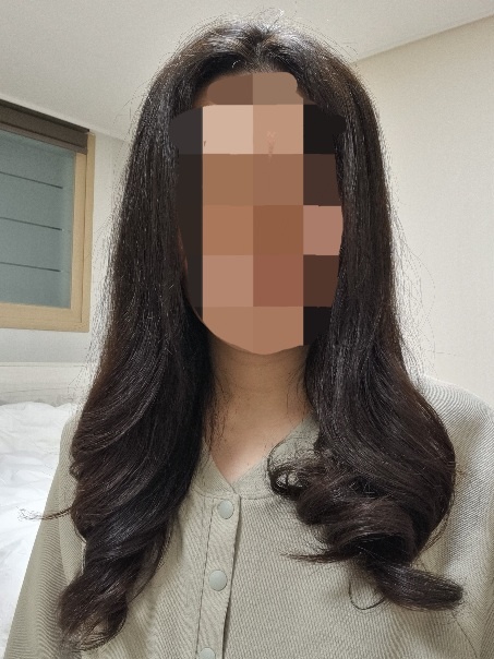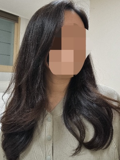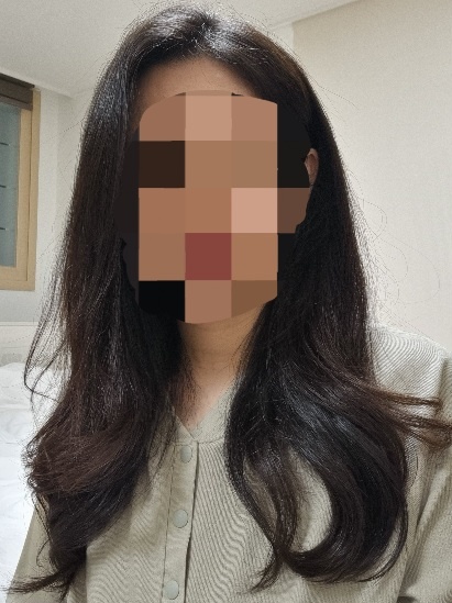 마지막으로 코안다 스무딩 기능으로 존재감을 뽐내는 곱슬머리들을 차분하게 만들어줍니다. 곱슬거렸던 부분이 확실히 차분해지죠?