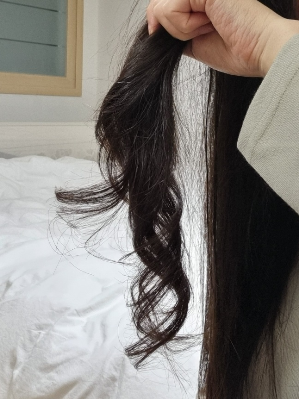 그나마 다행인 건 머리카락이 가늘고 힘이 없는 편이라 고데기나 드라이를 하면 잘 먹히고 결이 조금 살아납니다. 주기적인 뿌리 매직 + 매일 아침 고데기의 조합으로 곱슬을 커버하기 때문에 주변 사람들은 곱슬머리인 줄 잘 모르는 머리죠. 매일 아침 고데기로 머리카락에 컬을 넣는 바람에 머리 끝부분은 상해서 늘 푸석푸석합니다.